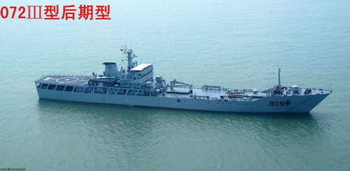 2003年夏季,二艘新的坦克登陆舰(LST)类型的大型登陆舰在上海沪东-中华造船厂被首次看见。这些登陆舰最近识别是072-II型(Yuting-级)的改进型,即是072-III型(Yuting-II级)。在2004年早期另外的二艘相同型号登陆舰在大连造船厂建造中被看见。2005年之前至少这一个等级的七艘登陆舰已经被看见或服役中或在建造中,增加在PLA海军服役中大型坦克登陆舰(LST)的总数到25艘。