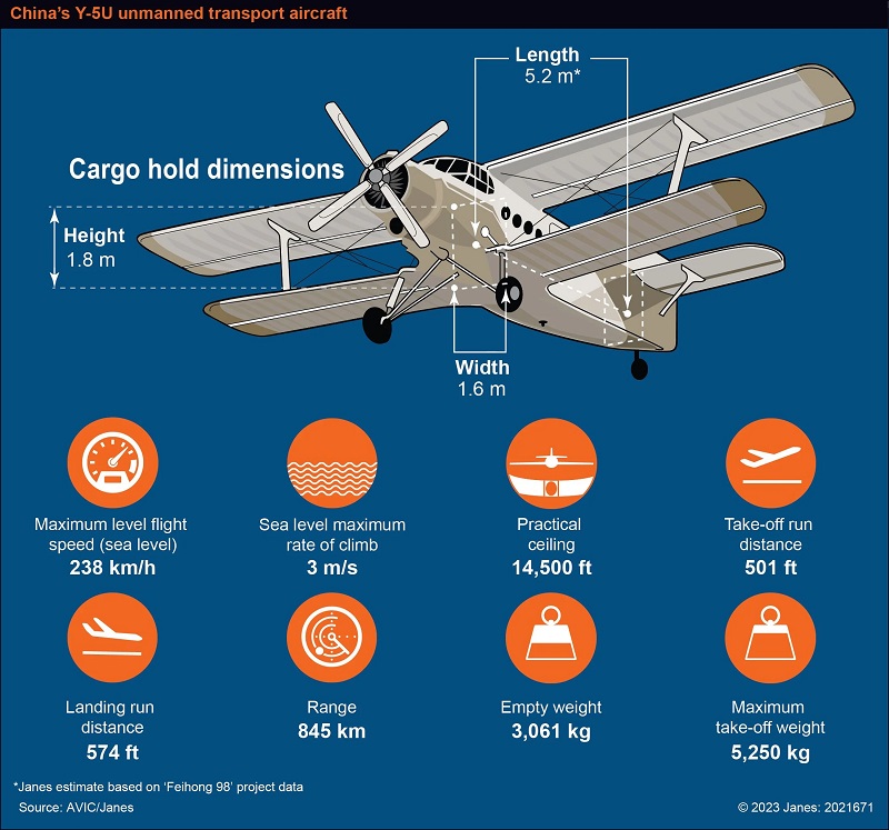 简氏:中国运-5U型运输无人机进行降落、起飞试验 Date:2023-03-08 Source:Jane's By:Akhil Kadidal Viewed: |